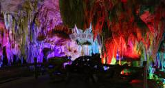 更絕的是,鵝管和鐘乳石倒映在水中,上下映照、渾然一體、形成了一座五光十色的巨大金山,光芒四射、龍鱗點(diǎn)點(diǎn)。她離奇多變的光影、五彩繽紛的顏色、千姿百態(tài)的形狀、加上水滴池面、洞中的天籟之音,形成了神秘之境讓你感到撲朔迷離,如在夢(mèng)中、疑似天堂。當(dāng)您走近她時(shí),就體會(huì)到什么是人間仙境,什么是滄海桑田;當(dāng)您聆聽(tīng)她時(shí),就知道什么是余音繞梁,什么是仙樂(lè)飄飄。那感覺(jué)、那韻味豈是語(yǔ)言能描述出來(lái)的。